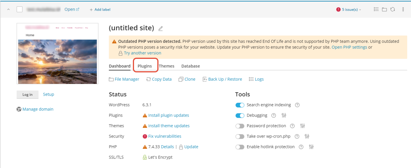 - In the Plugin menu, please change the status of the plugin you want to disable as shown in the image.
