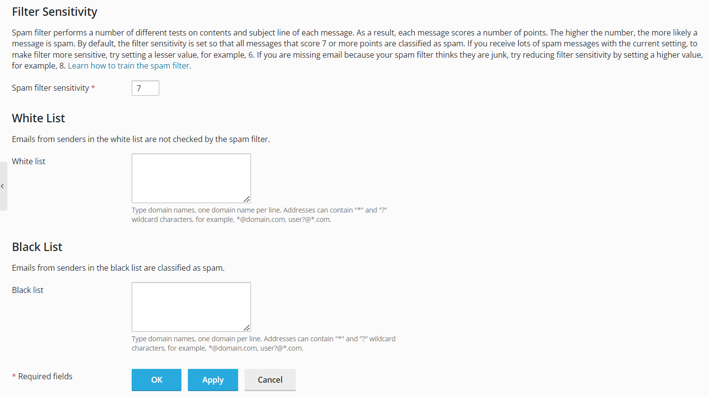 Plesk server menggunakan sistem score agar bisa menentukan apakah email yang diterima layak untuk diteruskan ke mailbox atau ditandai sebagai spam.