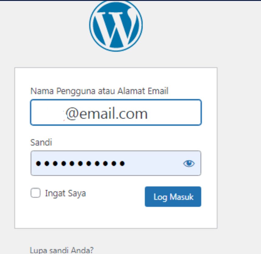 Lakukan login ke akun WordPress Anda melalui namadomain/wp-admin. Misalnya, situs.com/wp-admin. Setelah tampilan seperti ini muncul, masukkan username dan password Anda. Klik Login.