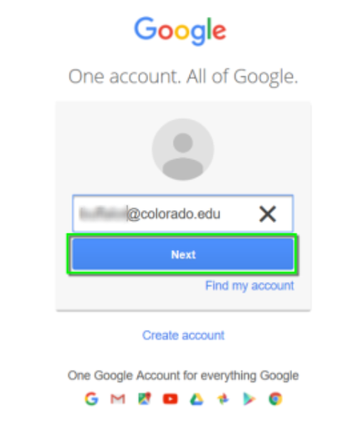 Masukkan alamat IdentiKeyUsername@colorado.edu Anda di kolom email (bukan first.last@colorado.edu), lalu klik Next .