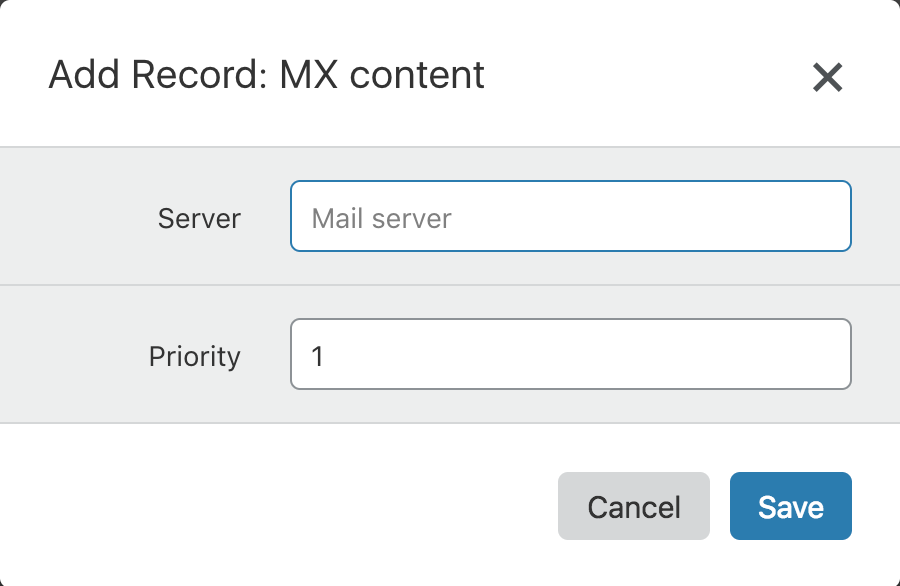 Nama data MX yang khas adalah domain root seperti example.com . Namun, hubungi penyedia hosting email Anda untuk mengonfirmasi Nama MX dan detail Server .