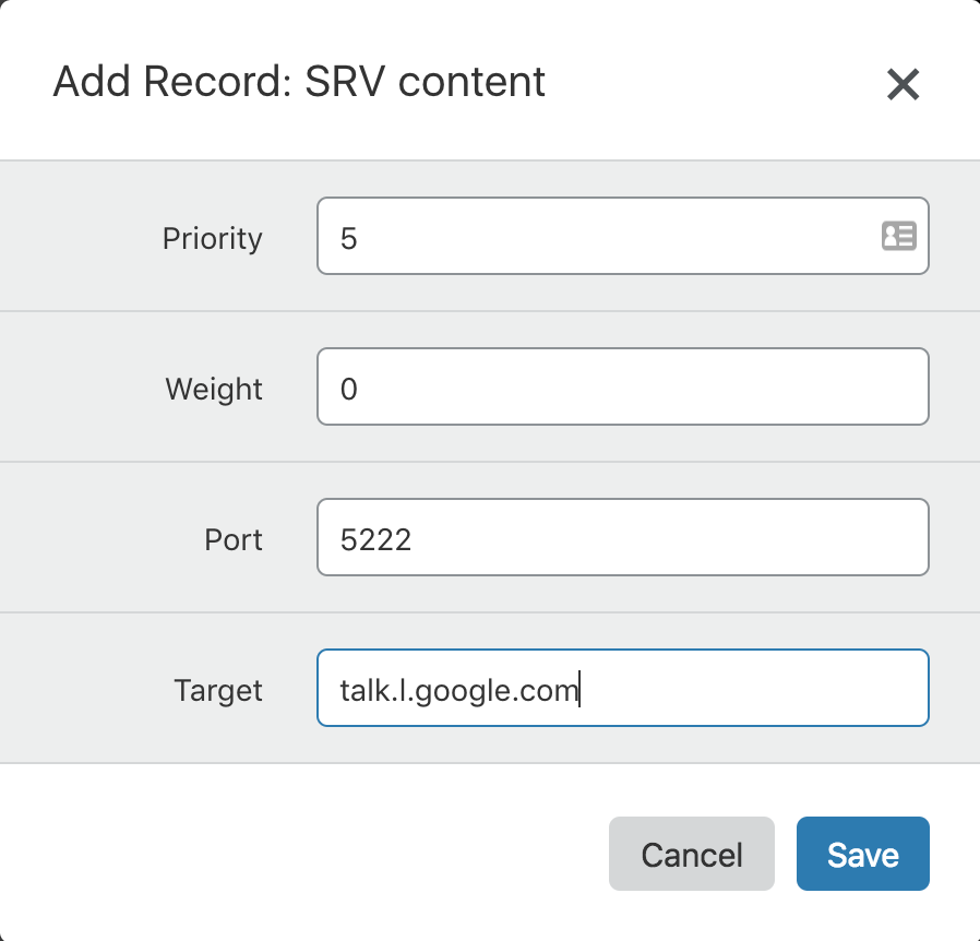 _xmpp-client._tcp.domainanda.com. DI SRV 5 0 5222 talk.l.google.com.PTR