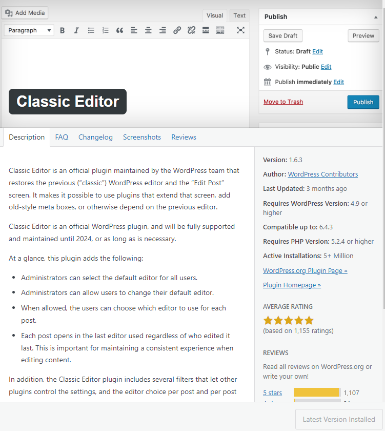 untuk kalian yang ingin kembali ke tampilan editor seperti sebelumnya, tidak perlu khawatir. kalian tidak perlu Downgrade Versi Wordpress, namun cukup menginstall Plugin Classic Editor.