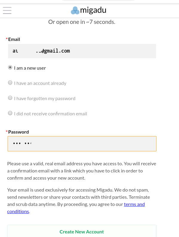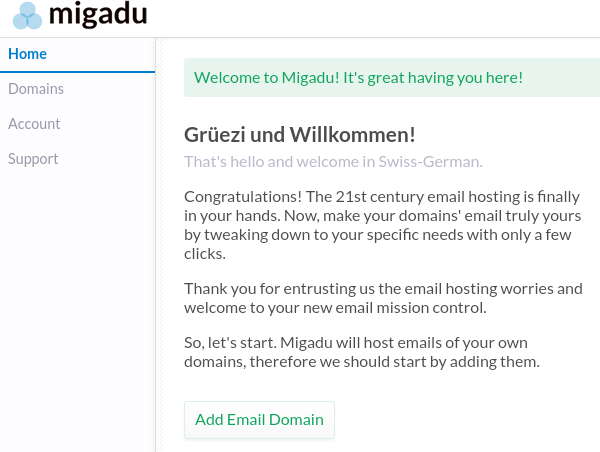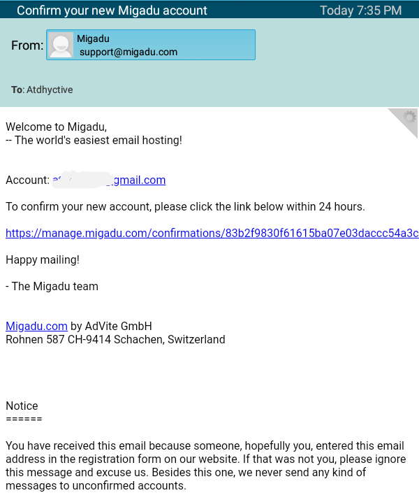 1. Daftar dulu disini www.migadu.com, daftarnya gampang kok, tinggal masukkin email dan password, konfirmasi via email, uda selesai.