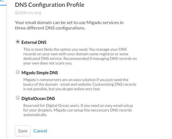 3. Pada DNS Configuration Profile pilih External DNS, nanti akan ada settingan DNS untuk dipasang di Domain anda.