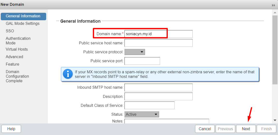 Jika sudah, lakukan pengisian domain name, lalu klik next.
