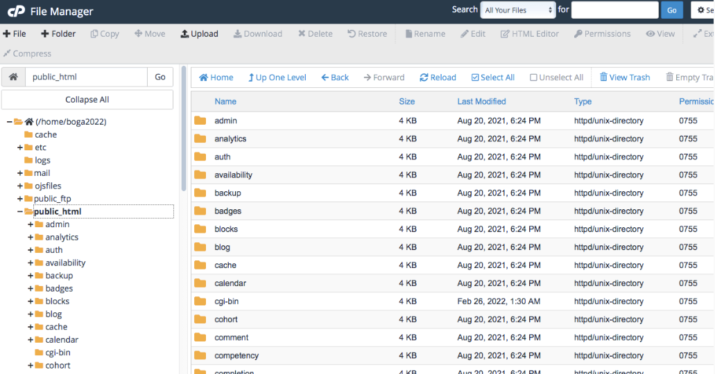 Pastikan anda punya akses ke control panel atau file manager jurnal untuk meng-edit file config.inc.php jika menggunakan cPanel anda dapat melihat fitur ini dengan cara login ke cPanel -> klik menu File Manager.