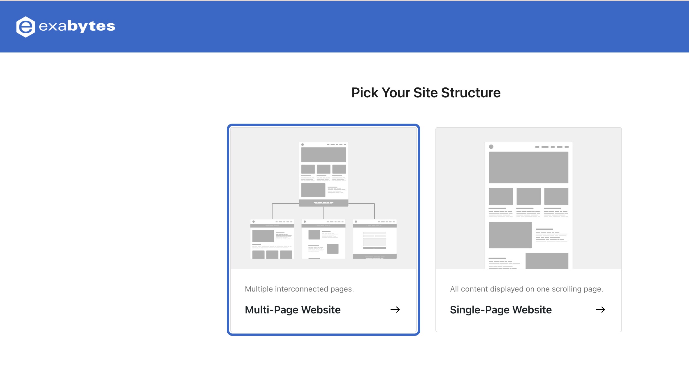 3. Setelah itu, pengguna harus memilih apakah situs web akan berbentuk multi-halaman atau satu halaman.