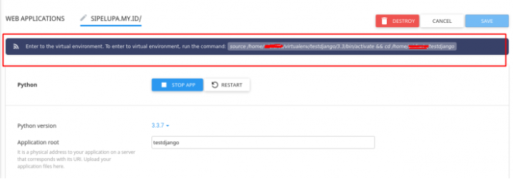 - Application Root : nama folder untuk meletakkan file aplikasi python yang akan digunakan