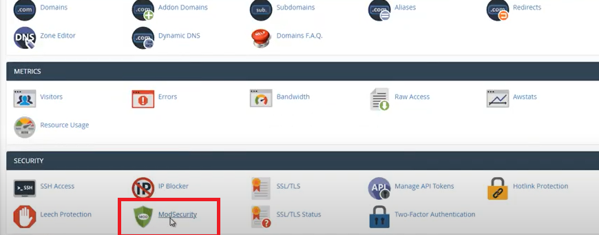 Silahan login hosting cpanel anda https://namadomain.com/cpanel pilih ModSecurity