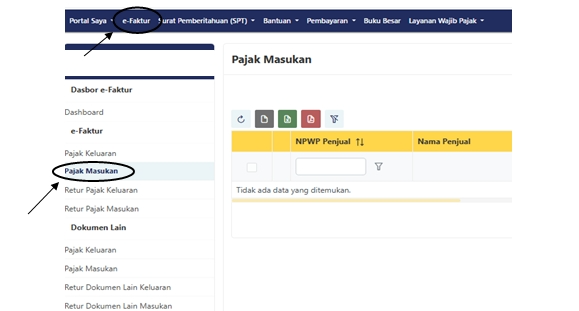 Pilih menu E-Faktur > Pajak Masukan > Klik Tombol Refresh