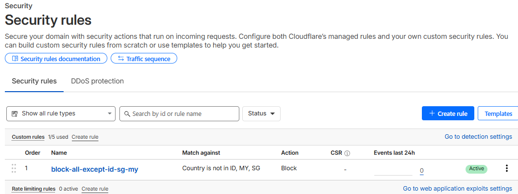 Dengan demikian, maka website/domain anda hanya dapat diakses oleh negara yang anda izinkan. Ini dapat menjadi salah satu langkah untuk mengamankan sekaligus menghemat resources dari akses yang tidak valid.