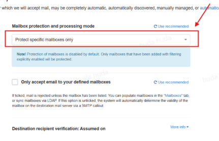 Pastikan opsi Mailbox protection and proecssing mode sudah di set ke Protect All Mailboxes.